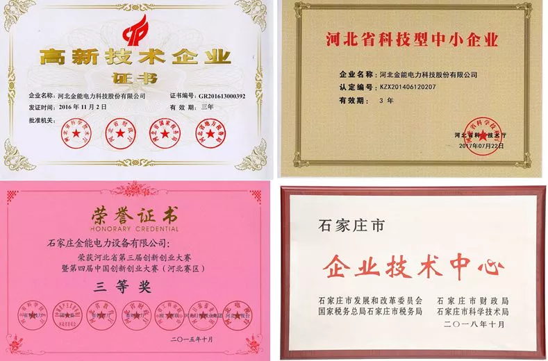 金能電力榮獲“高新技術企業(yè)”、“科技型中小企業(yè)”等多項榮譽