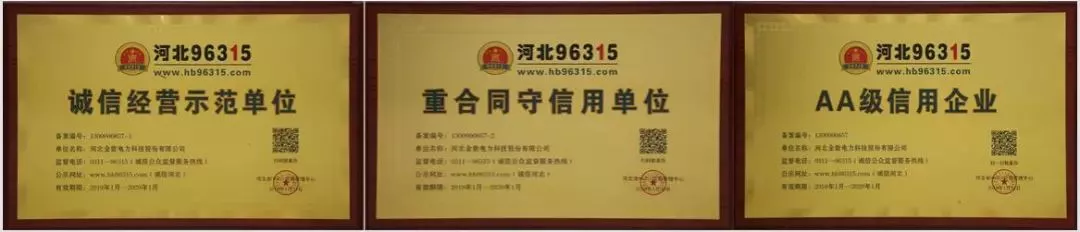 金能電力榮獲河北96315“誠信經營示范單位”、“重合同守信用單位”、“AA級信用企業(yè)”